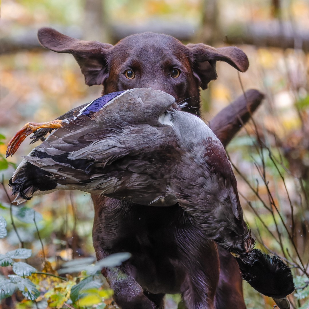 Auch Hazel wird bei mir jagdlich als auch im Dummybereich geführt, wobei sie die jagdliche Arbeit doch etwas bevorzugt ;-). Wenn es um die Suche oder den Apport von Enten geht ist Hazel unermüdlich. Die Prüfung mit der lebenden Ente konnte sie mit 4h abschließen. Bereits vor ihrem 2. Lebensjahr konnte sie viele Prüfungen absolvieren, die Arbeit mit ihr macht einfach Spaß. Hazel ist sehr führig und immer darauf bedacht, alles richtig zu machen. Sie verfügt über viel will to please und ist trotzdem bei der Arbeit extrem schnell.
